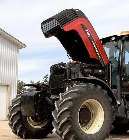 Проверка уровня масла, охлаждающей жидкости, топливных и гидравлических фильтров осуществляется непосредственно с земли. Для большего доступа к двигателю капот поднимается вверх, открывая полный доступ к моторной установке, радиаторам и воздухофильтрам.
