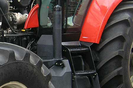Для облегчения запуска при минусовой температуре на тракторе установлены: два мощных аккумулятора, подогреватель наддувочного воздуха, электрический подогреватель блока двигателя/масла трансмиссии.